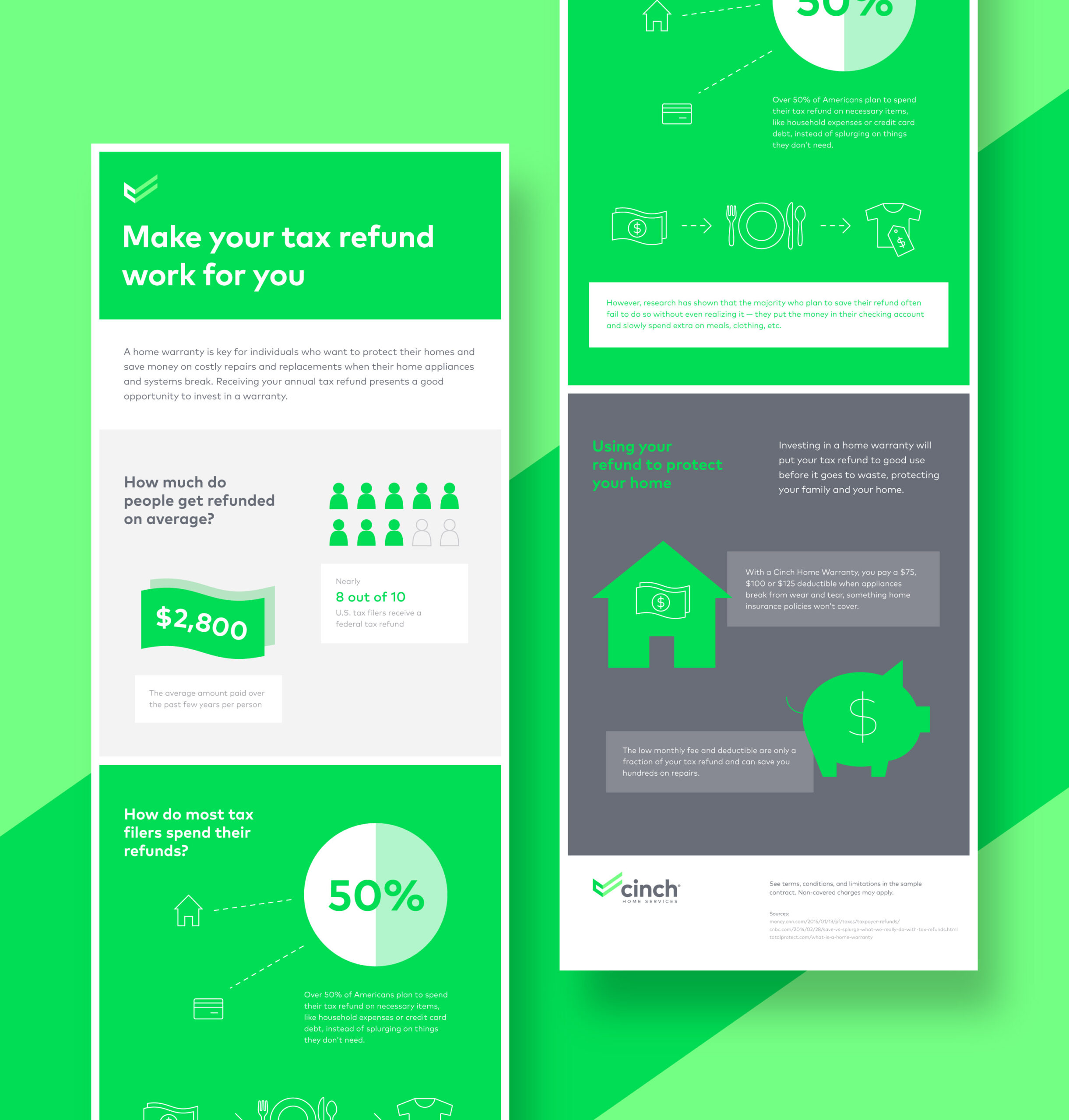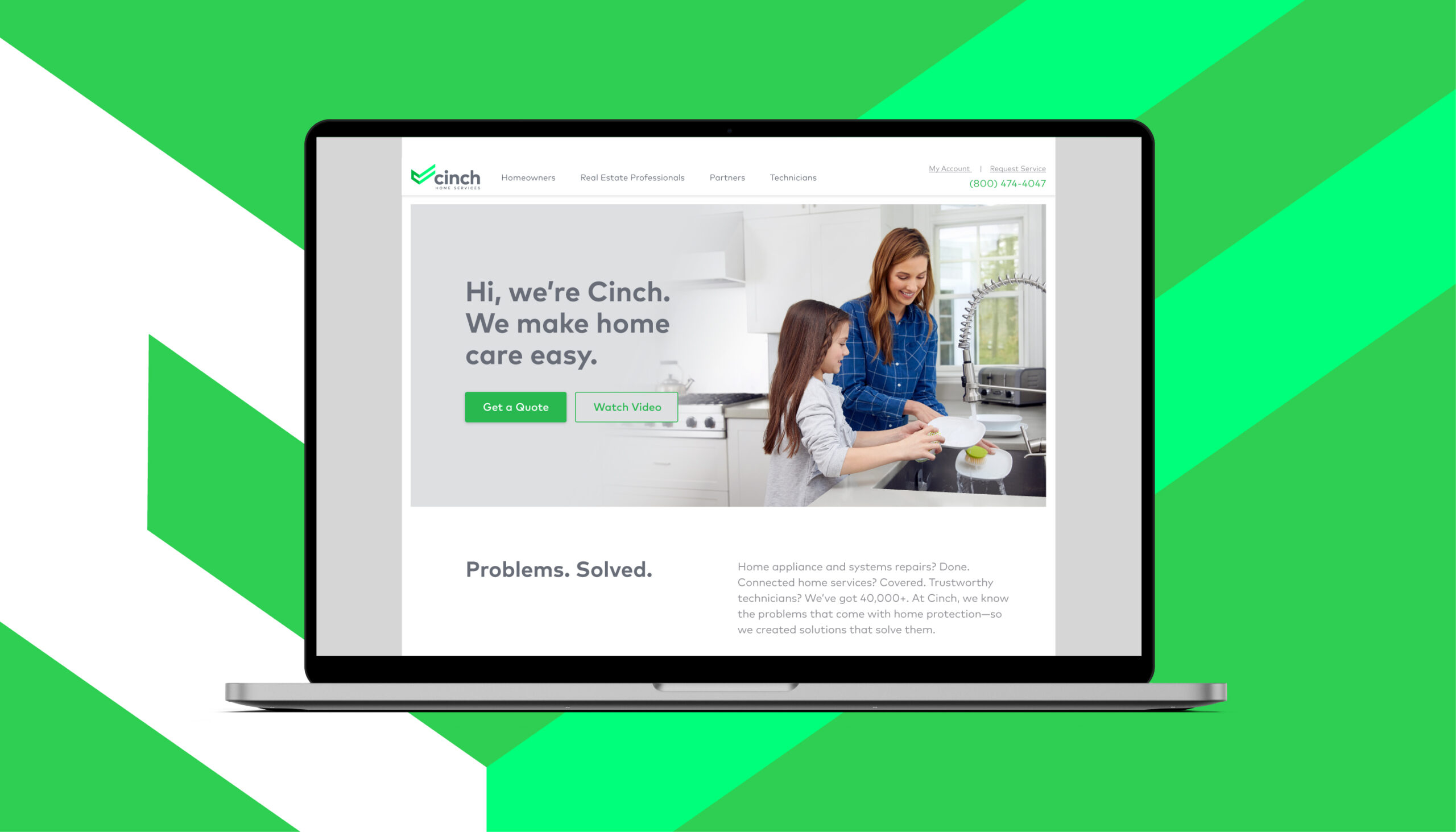 Cinch Home Services approached us to create their marketing website and accompanying branded materials after a recent name change and brand overhaul. Cinch offers affordable home protection plans that help control the costs of appliance and system breakdowns for their customers.